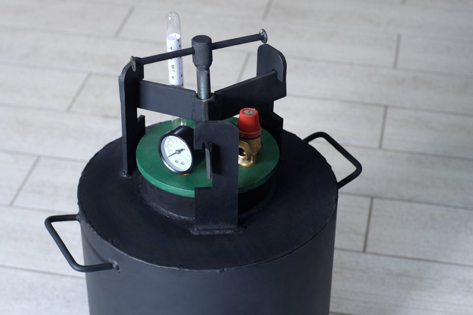 Прижимной механизм обеспечивает легкость закрытия и открытия крышки автоклава.