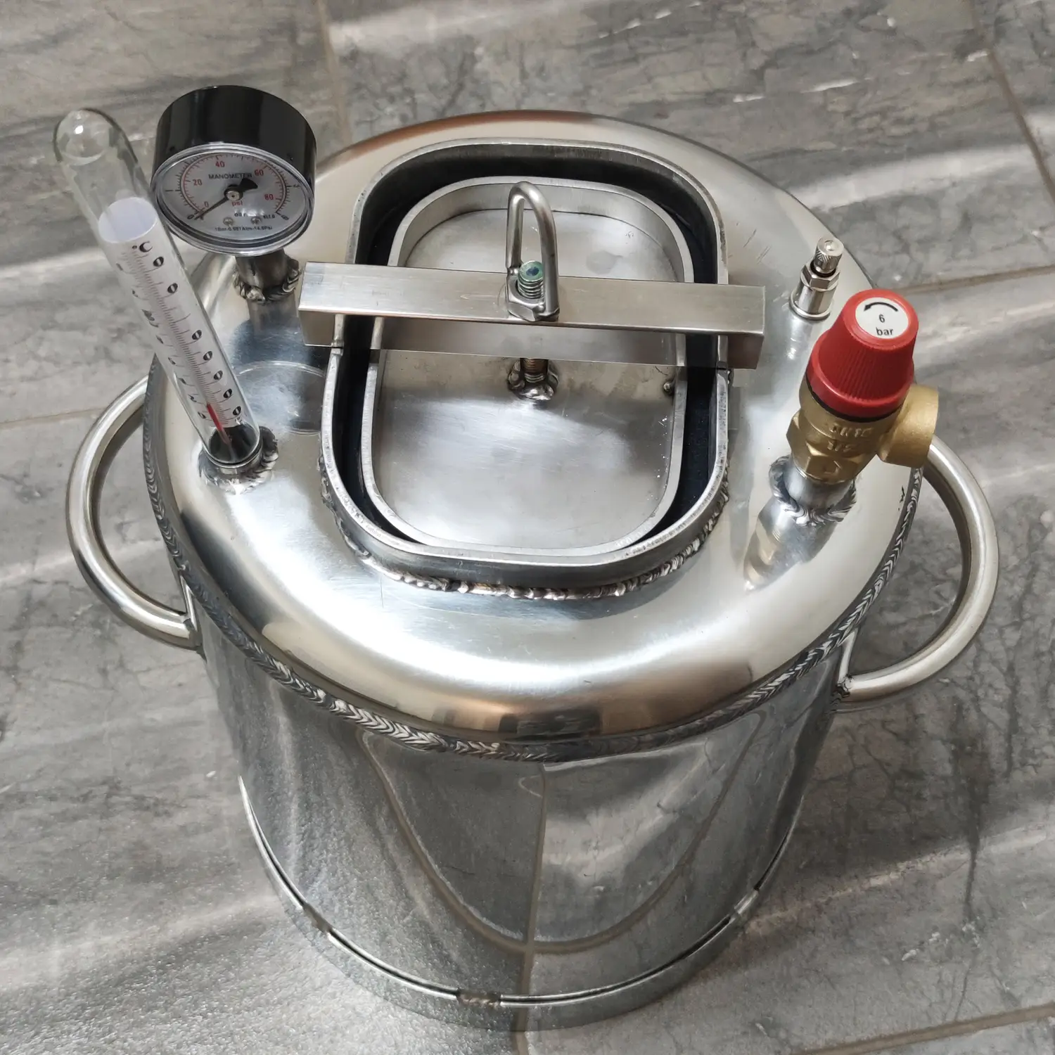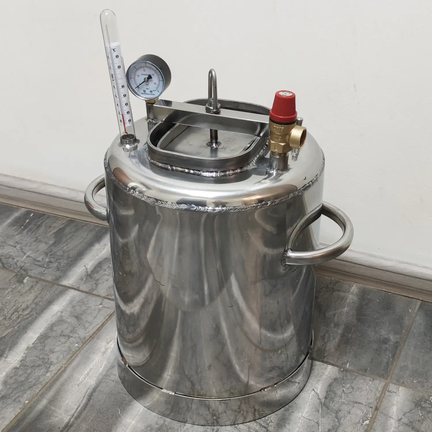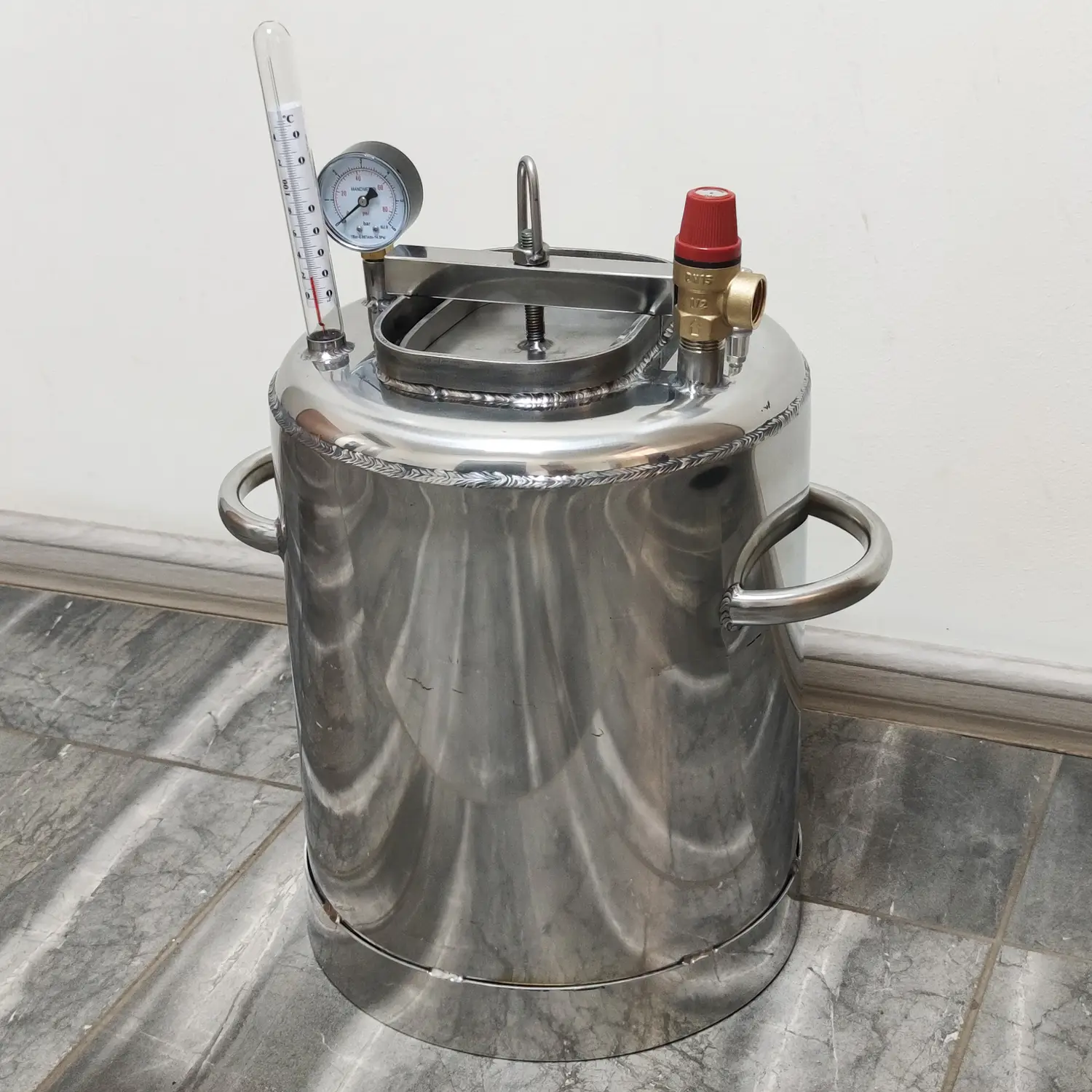 - Корпус автоклава виготовлений з нержавіючої сталі – матеріалу, що славиться своєю довговічністю, стійкістю до корозії та високою міцністю.