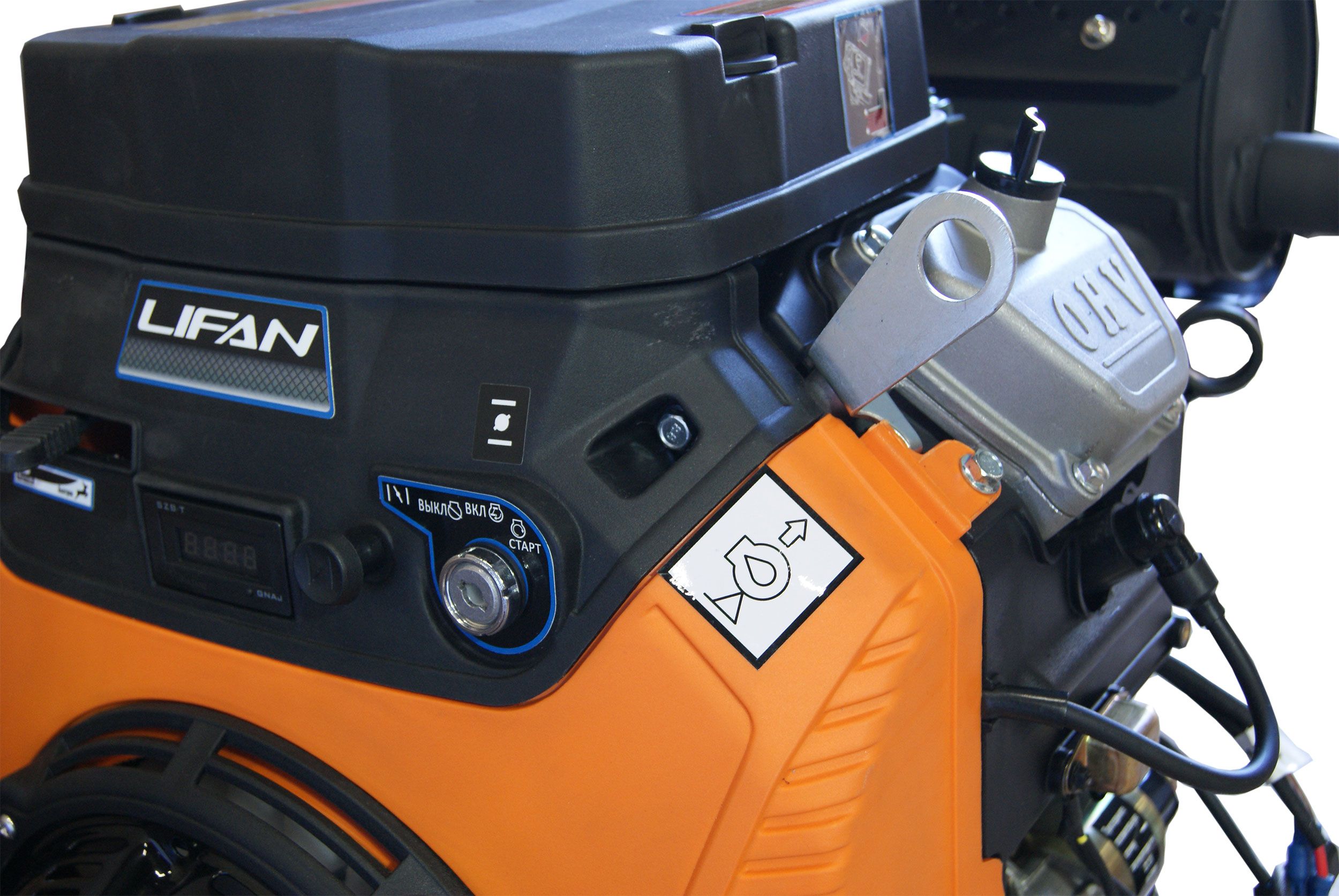 - У порівнянні з агрегатом на дизелі бензиновий двигун Ліфан не створить ніяких незручностей при нульових температурах: запуск відбувається буквально з першого разу.