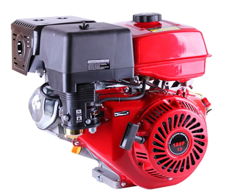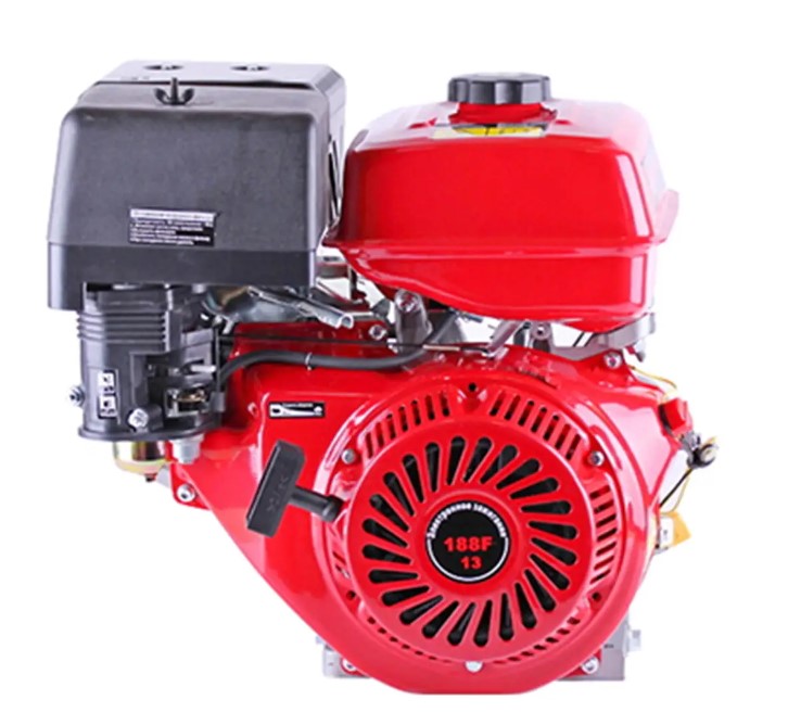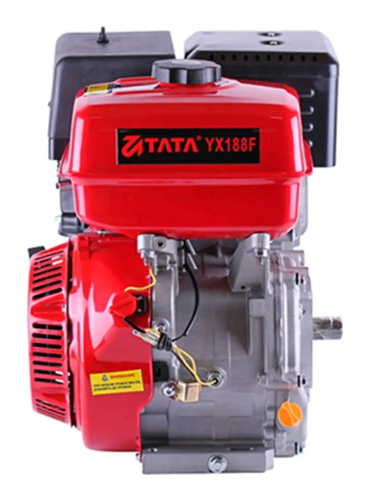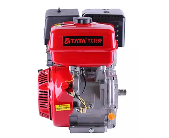 Двигун бензиновий ТАТА 188F з потужністю 13 кінських сил є чотиритактним двигуном, оснащеним ручним стартером для запуску. Цей двигун використовує повітряну систему охолодження, що забезпечує ефективний контроль температури та запобігає перегріву навіть при інтенсивній експлуатації.