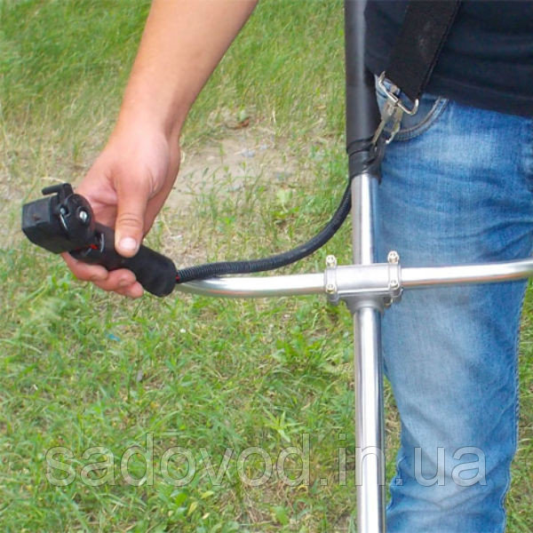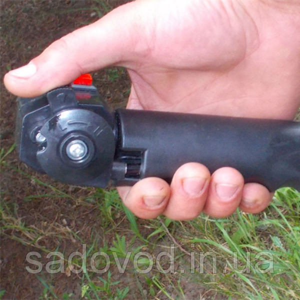 - Петлеподібна рукоятка: найбільш поширений тип рукоятки в мотокосах та електротримерах. Цей тип рукоятки має дугоподібну форму, яка утворює петлю або півколо навколо руки оператора. Вона забезпечує зручне та надійне утримання інструменту та дозволяє керувати ним з легкістю. Така рукоятка зазвичай розташована на верхній частині інструменту і може бути виконана із пластику або металу.
