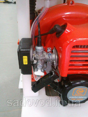 Однією з відмінних рис і одночасно переваг цього мотообприскувача є наявність у конструкції додаткового насоса . Саме завдяки йому апарат здатний розпорошувати препарати на відстань до півтора десятка метрів.