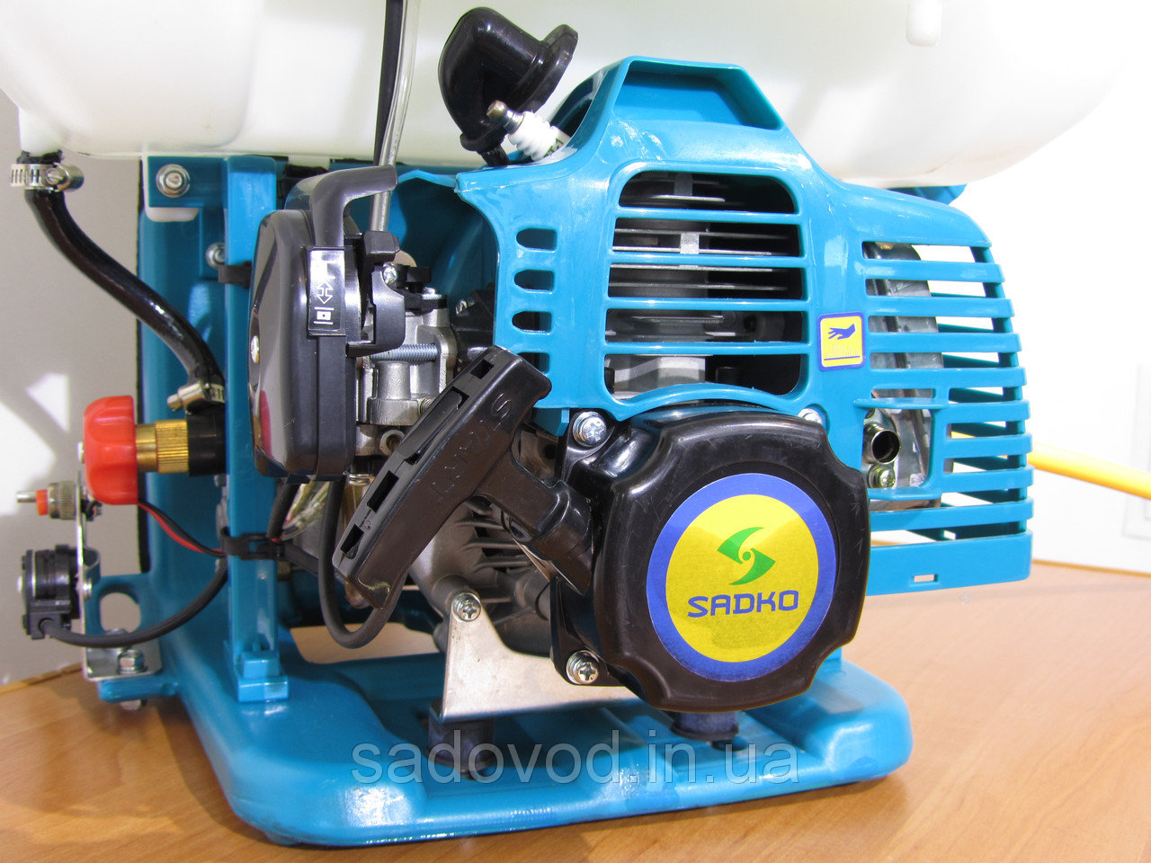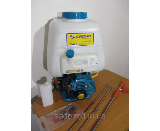 - Sadko GSP 3325 має високу ергономіку, одягнувши за плечі обприскувач, Ви без праці та викручування рук, зможете керувати ним, оскільки всі елементи керування необхідні під час роботи (регулювання кількості обертів, кнопка відключення двигуна, кран подачі рідини), розташовані у зручній зоні досяжності . Обороти двигуна регулюються дуже плавно та точно.