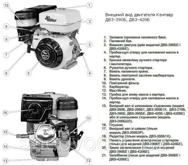 Конструктивно Кентавр ДВЗ-390Б выполнен по типу двигателя GX 390 от известной компании Honda, чьи разработки вот уже не один десяток лет используют в качестве эталонного образца.