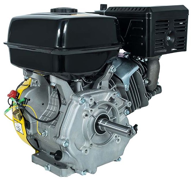 - Представленный двигатель – четырехтактный одноцилиндровый, верхнеклапанный, с рабочим объемом в 389 куб. см. Большие охлаждающие ребра на алюминиевом корпусе цилиндра способствуют его качественному охлаждению.
