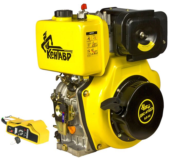 Двигатель дизельный Кентавр ДВС-410ДЭ – является доукомплектованной блоком электростартера версией модели ДВС-410Д, не имеющей каких-либо других отличий в техническом исполнении. Наличие электрической системы пуска требует минимальных усилий на старте работ, без применения физической силы – рывка, прилагаемого к тяговому тросу.