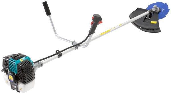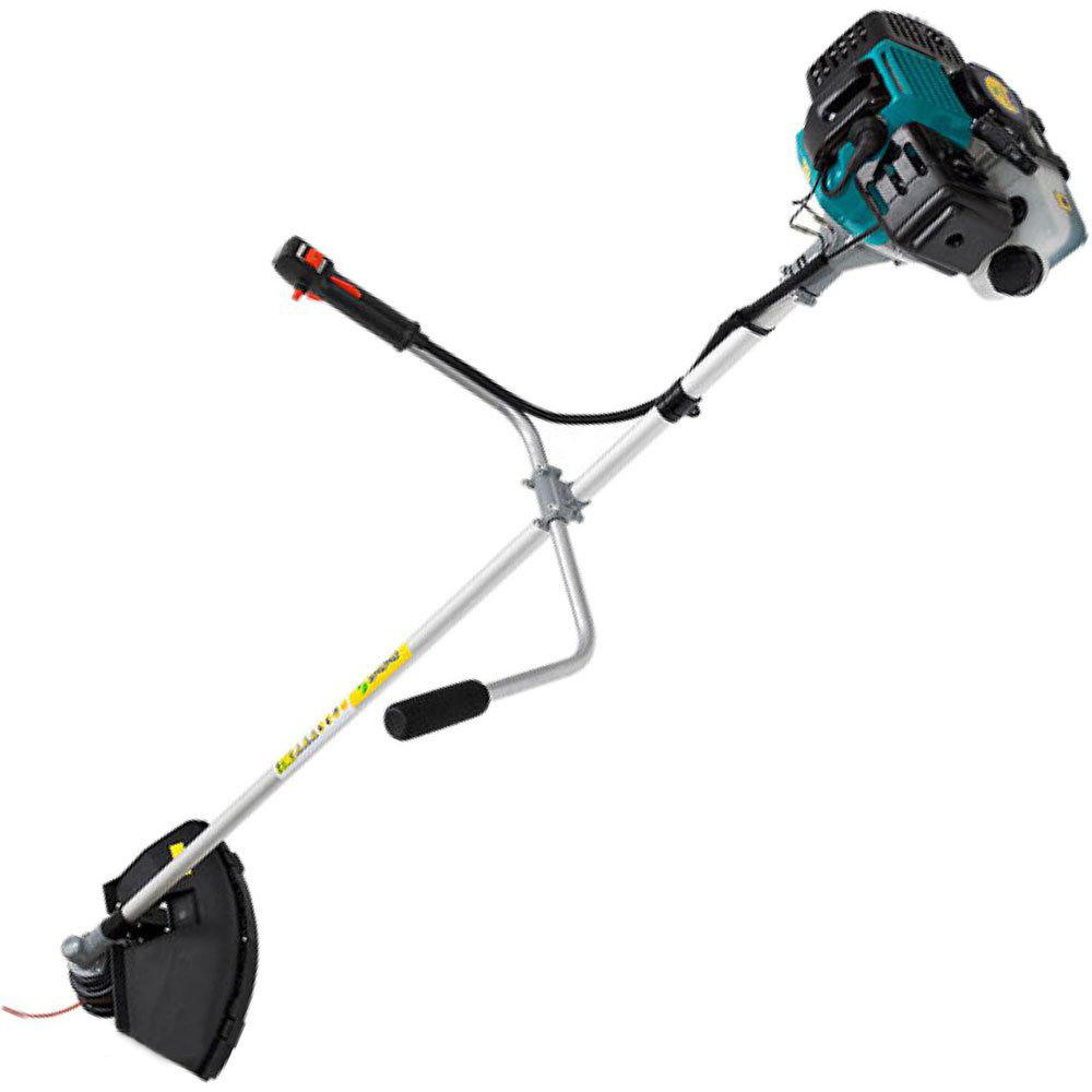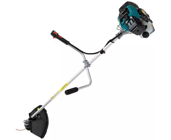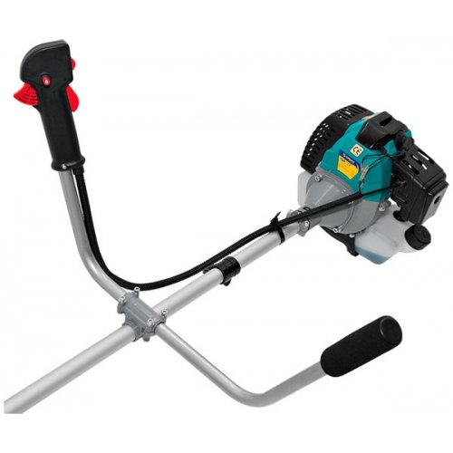 - За поддержание стабильной работоспособности и обеспечения продуктивного функционирования мотокосы отвечает выносливый двухтактный двигатель на 2.2 л.с., с объемом цилиндра 43 куб.см и эффективным воздушным охлаждением.