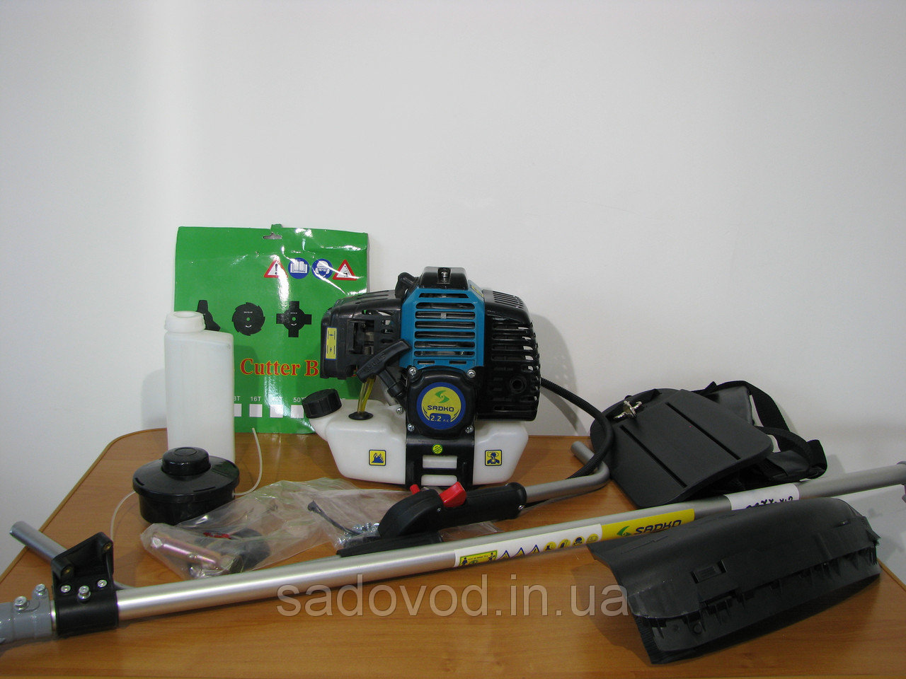 Мотокоса бензиновая Sadko GTR-2200 подойдет для больших участков, 8-ми лопастной нож легко обрежет как бурьян, так и молодую поросль деревьев. Коса обладает особенно большой мощностью.