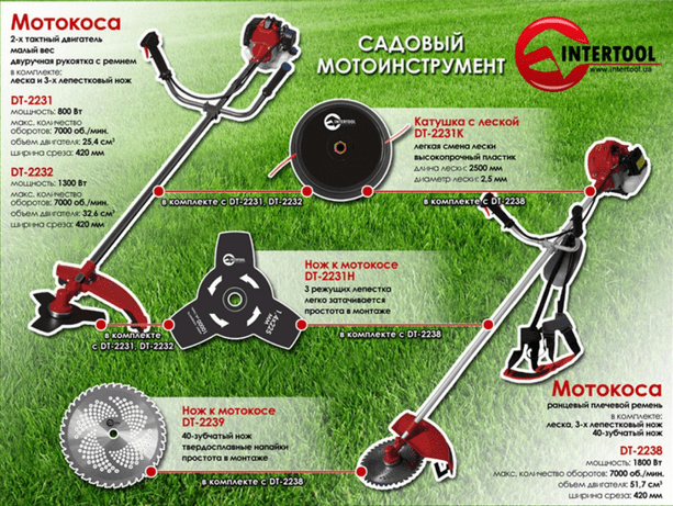 Преимуществами мотокосы Intertool DT-2232 являются: