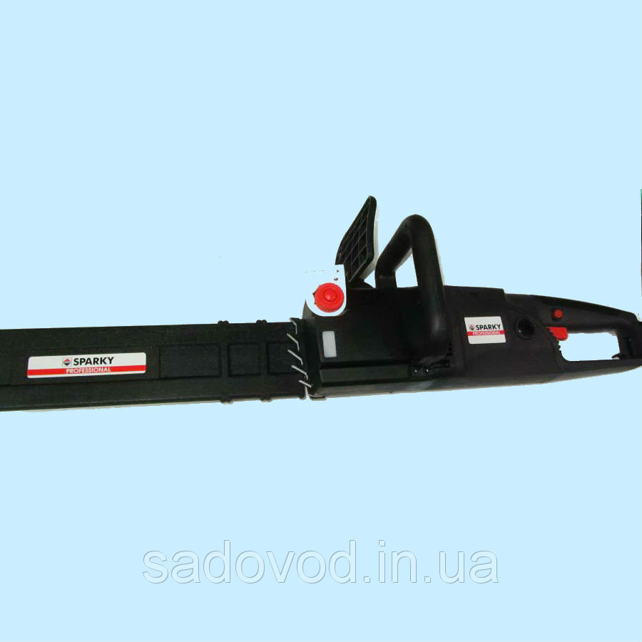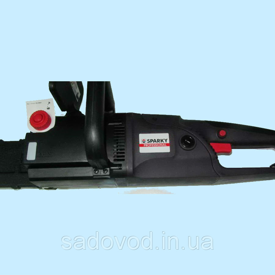 - Продольное размещение двигателя делает электропилу Sparky TV 2245 максимально маневренной, что немаловажно при работе в ограниченном пространстве, например, при формировании крон деревьев.