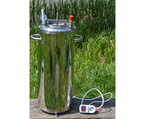 Автоклав электрический ТРОЯН ЛЮКС-28Э изготовлен из качественной пищевой нержавеющей стали AISI304. Цифра 28 в названии модели отражает его вместимость: он может вместить до 28 банок по поллитра или 12 банок емкостью в один литр. Этот автоклав обладает компактными размерами и не будет занимать много пространства на вашей кухне. Устройство оснащено терморегулятором для управления процессом, и Вам лишь нужно настроить его согласно рецепту консервации.
