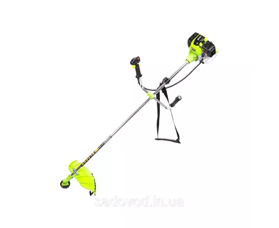 В комплекте поставляется универсальный диск из прочного металла, предназначающийся для срезания поросли со стеблями, а также катушка с леской для подрезания травы. Эргономичная рукоять оснащена возможностью регулировки по росту. Топливный бак защищен от ударов и механических воздействий. Повышенная вместимость емкости дает возможность увеличить время работы триммера без дозаправки.