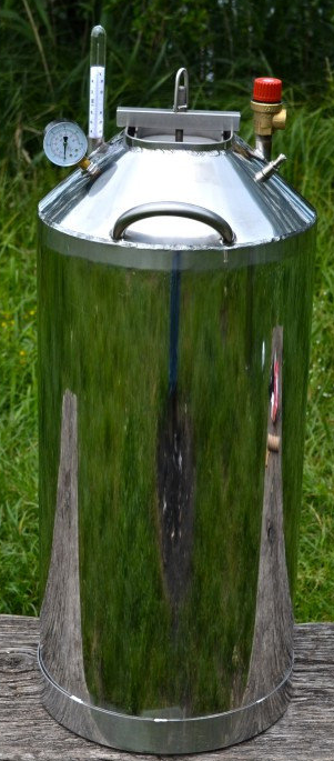 Для нагрівання автоклав використовує зовнішнє джерело тепла, що робить його незалежним від електромережі. Цей агрегат може працювати на максимальній температурі до 120 градусів Цельсія та підтримувати тиск до 6 атмосфер, що робить його ідеальним для широкого спектру консерваційних процесів. Корпус пристрою виготовлений з нержавіючої сталі, що гарантує його довговічність та опір корозії. Така конструкція забезпечує надійність та безпеку в процесі консервації.