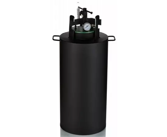 Автоклав газовый УКРПРОМТЕХ "Че-40" - недорогой автоклав большой вместительности для консервирования мясных тушенок, рыбных консервов, паштетов, грибов и овощей, варенья и компотов. Вместительность на 40 баночек объемом 0.5 литров подходит для переработки продукции средних объемов. Так же в камеру стерилизации можно помещать банки объемом 1 и 2 литра. Агрегат изготовлен из качественного чёрного металла и предназначен для нагрева от внешнего источника тепла. Для обеспечения безопасности автоклав оснащен аварийным клапаном.