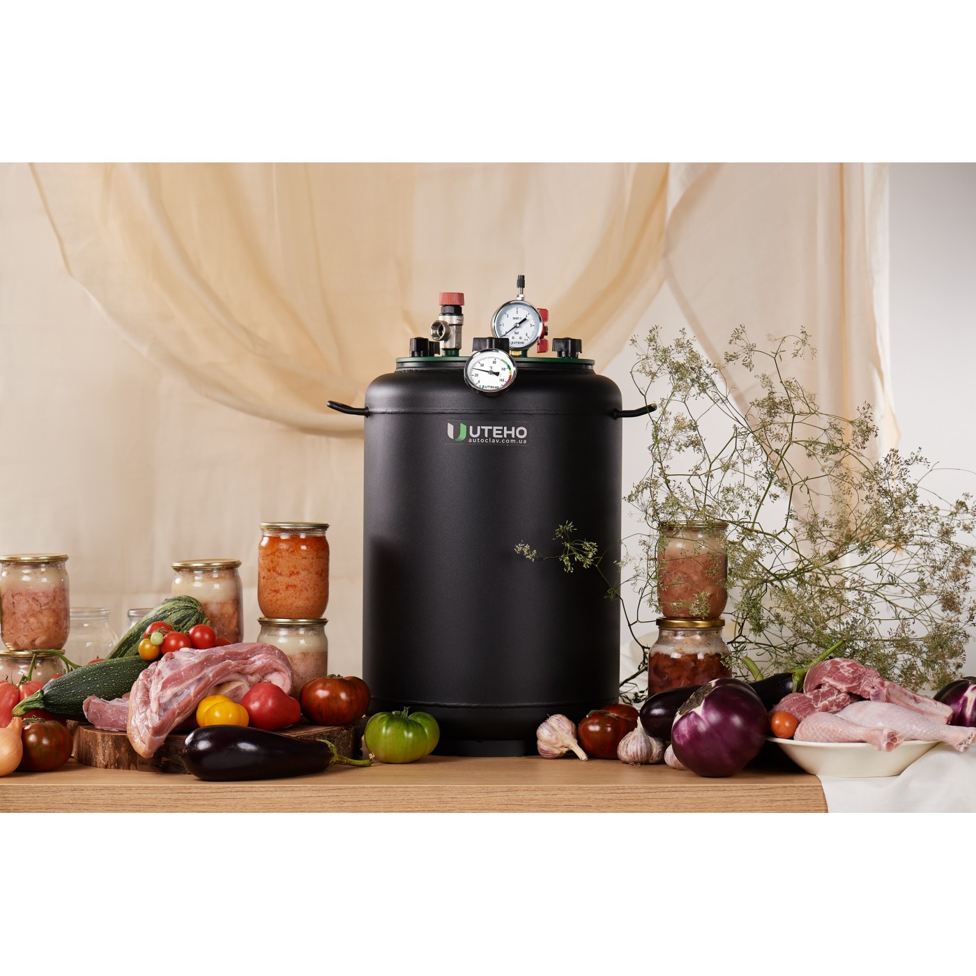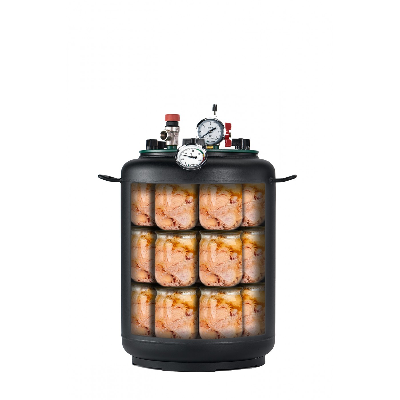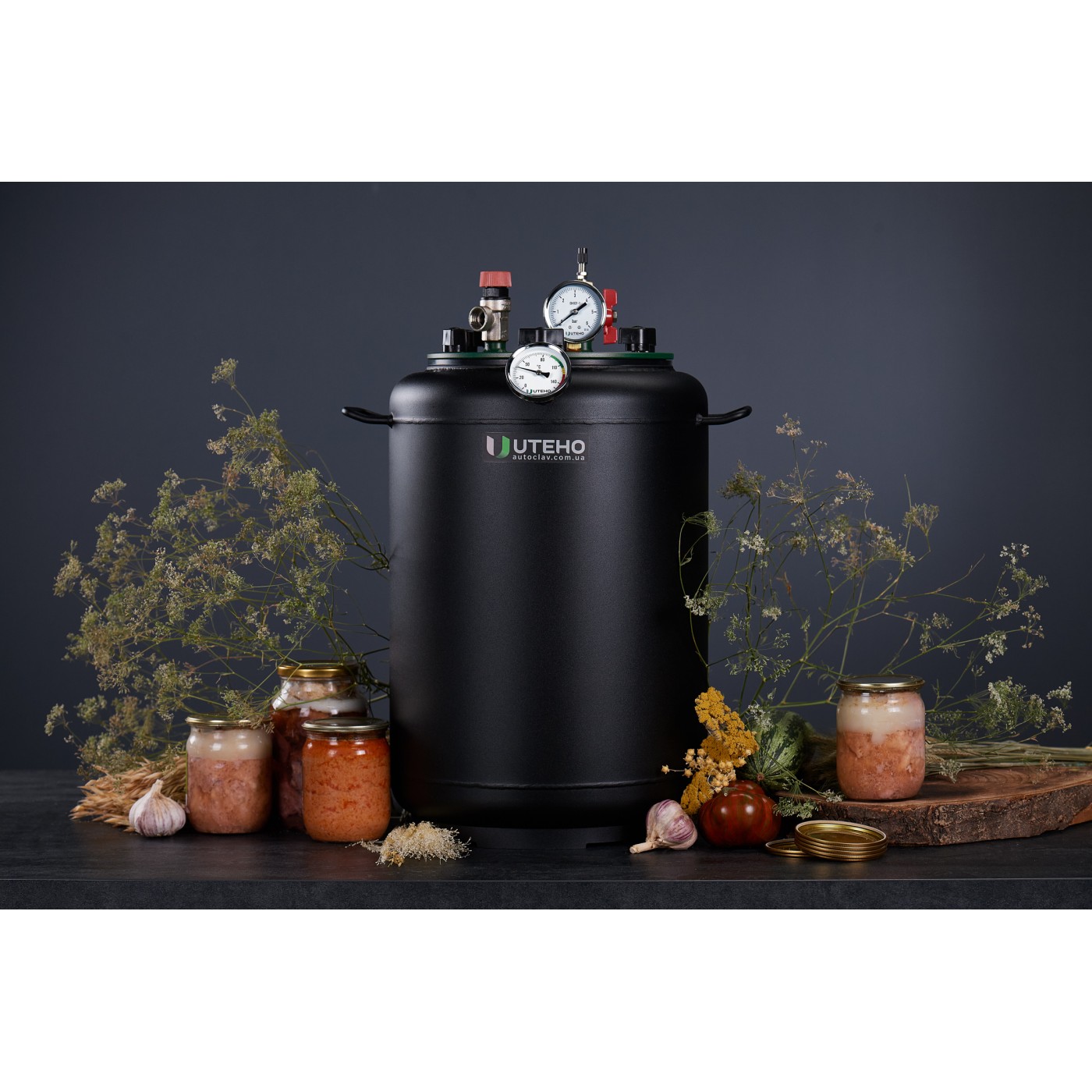 Автоклав газовий УКРПРОМТЕХ "УТех-24" - не дорогий автоклав із якісного, чорного металу, призначений для домашньої консервації та стерилізації. З таким помічником на кухні можна приготувати смачні рибні консерви та м'ясну тушонку, овочі та гриби, варення та компоти.