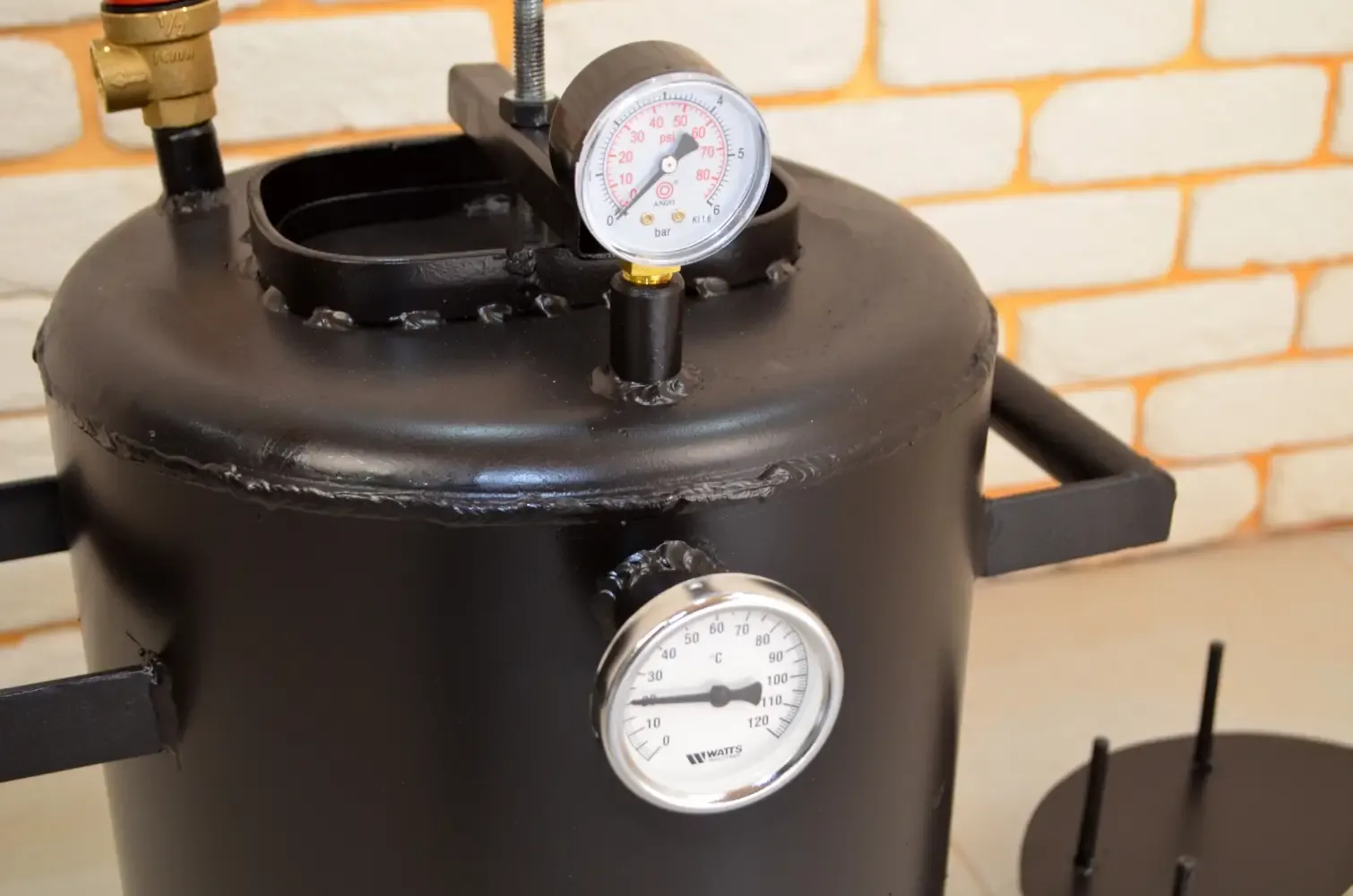 • Проконтролювати процес приготування можна за встановленим манометром та біметалевим градусником.
