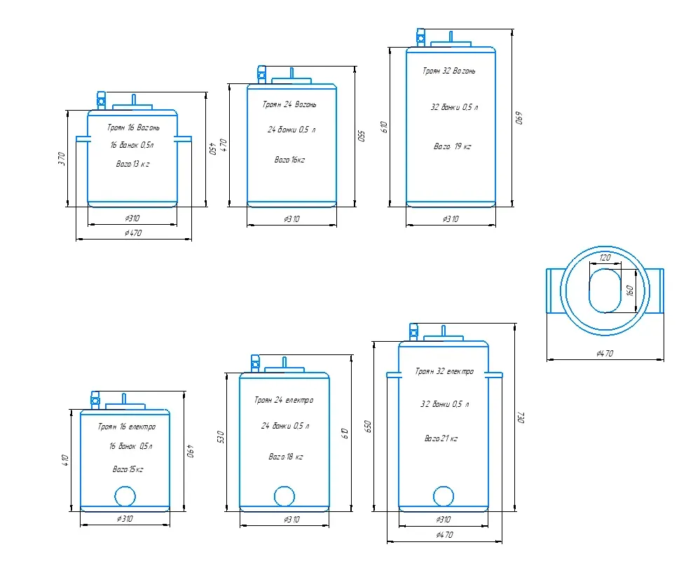 ВиробникТроян Джерело нагріву автоклавузовнішнє (газовий) Матеріал корпусу автоклавувуглецева сталь Банка 0.5 л.16 шт. Товщина стінок автоклаву3 мм. Гарантія12 мес.