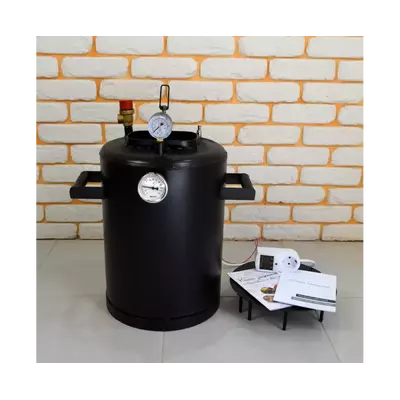 Автоклав разработан с учетом всех требований по безопасному использованию и оснащен предохранительным клапаном. Для контроля процесса термической обработки консервов устройство оснащено биметаллическим термометром и манометром. Высокоуглеродистая черная сталь толщиной 3 мм., из которой изготовлен корпус автоклава устойчива к коррозии и прогоранию, что гарантирует успешное использование агрегата в течение многих лет.