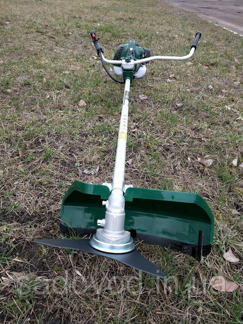 - При использовании мотокосы Iron Angel в качестве триммера устанавливается шпуля с полуавтоматической подачей лески диаметром 2 мм. Для удаления толстостебельной сорной растительности можно использовать различные виды ножей и дисков, включая входящий в комплект стальной 3-зубый нож.