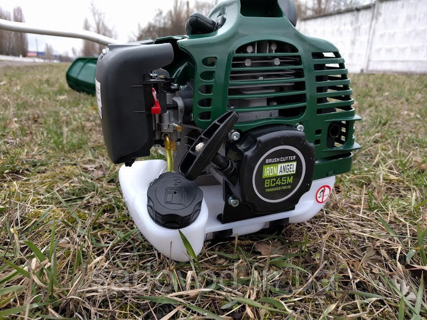 - Все комплектующие мотокосы Айрон Энджел BC 45 M-2 изготовлены с высоким качеством, а конструкция хорошо сбалансирована. Для удобства устройство Iron Angel оснащается двойным плечевым ремнем и эргономичной, регулируемой по высоте ручкой велосипедного типа.