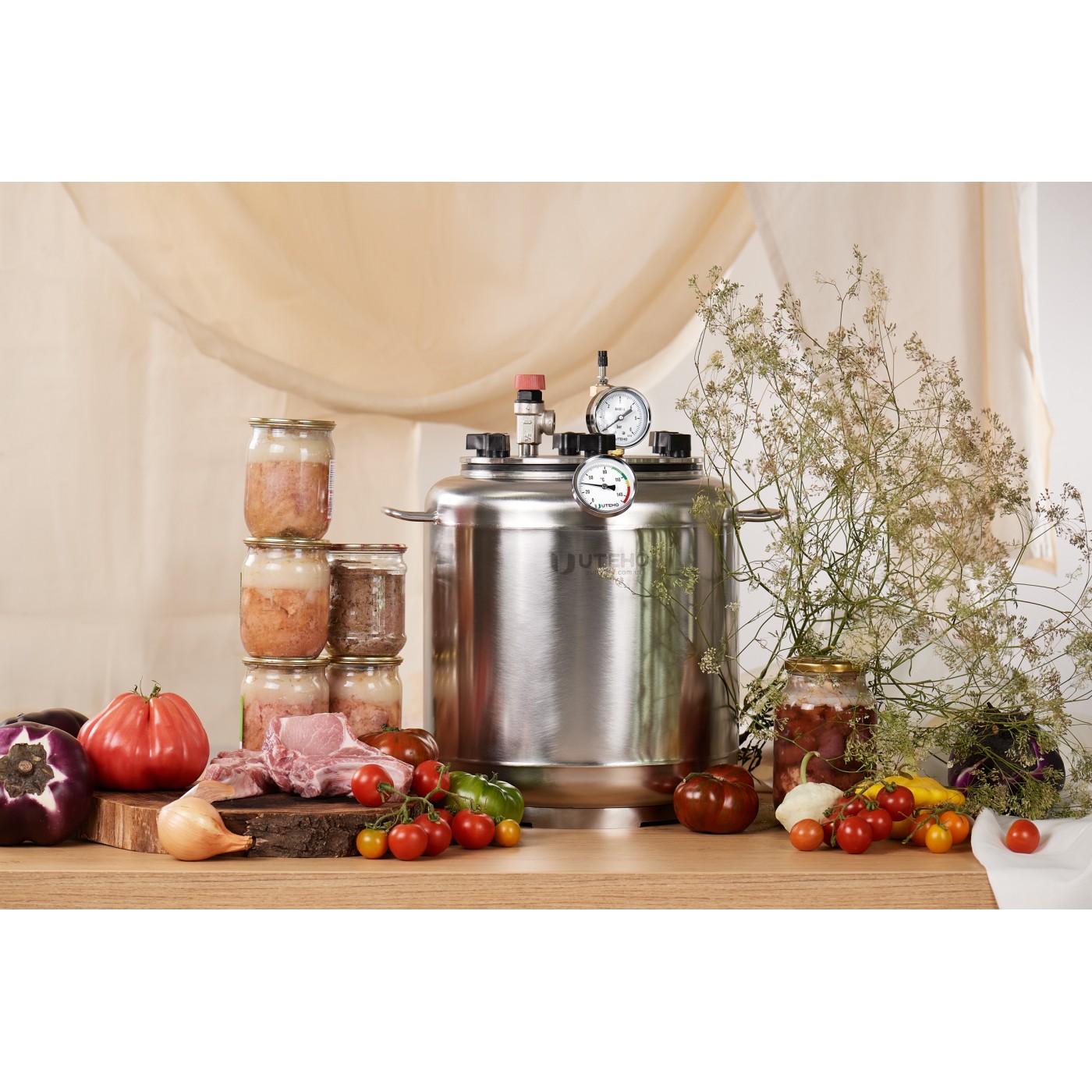 Автоклав Укрпромтех А16, на 16 банок, газовый, нержавейка, 20 л., для тушенки, крышка болты
