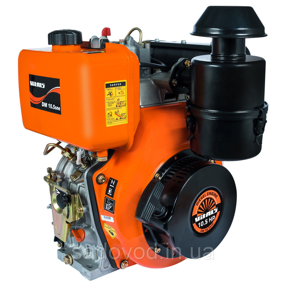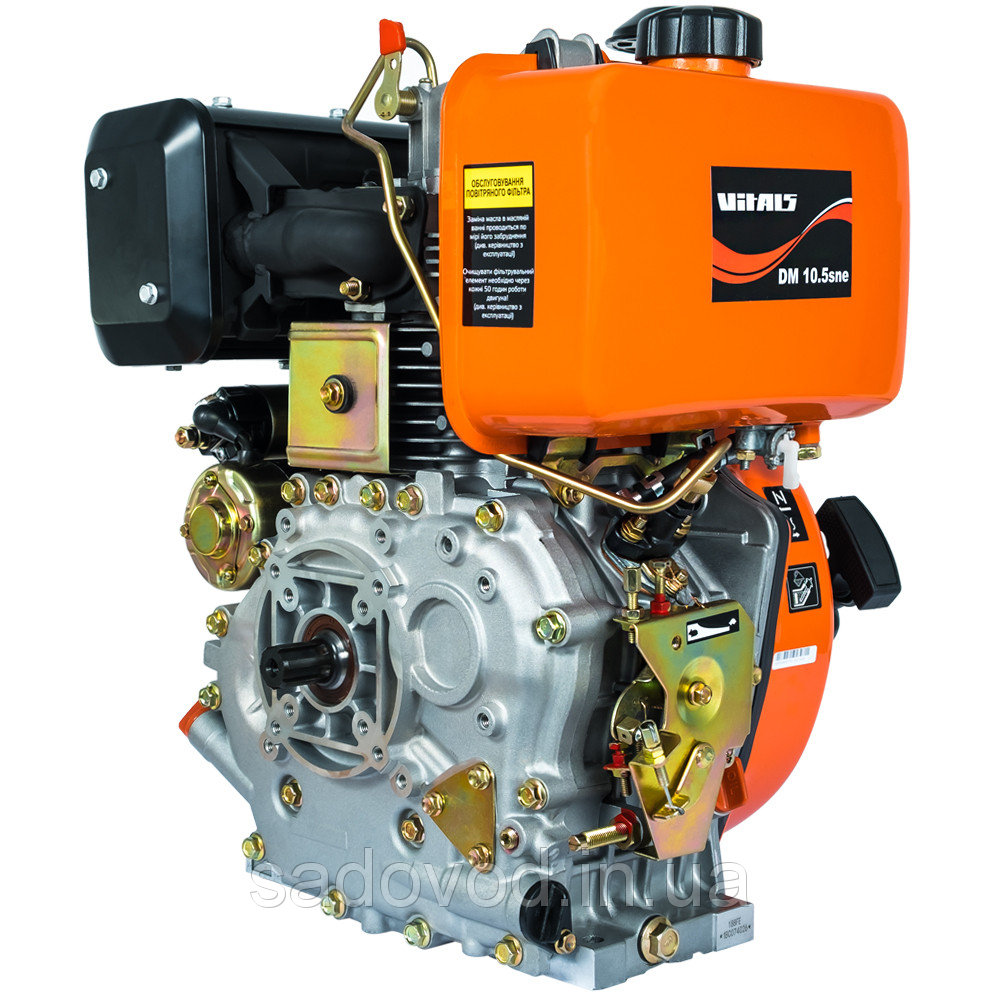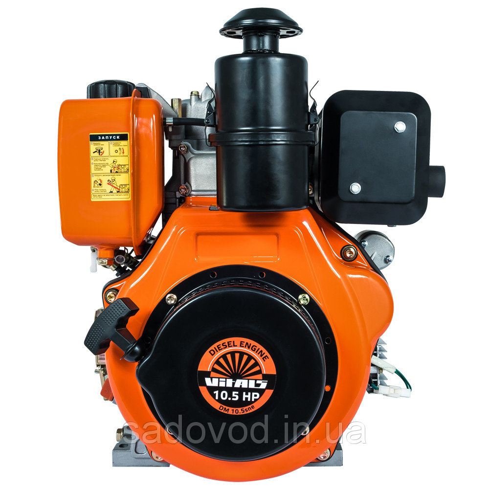 Двигатель дизельный Vitals DM 10.5sne– это надежный в эксплуатации и легкий в обслуживании силовой блок с дизельным одноцилиндровым 4-тактным мотором, системой электрического и ручного старта, и топливным баком вместимостью 5.5 л. Стабильная работа с поддержанием необходимого количества оборотов на различных режимах позволяет использовать силовую установку на широком спектре техники, оборудования и машин. По соотношению мощности к весу агрегат имеет один из лучших показателей в своем классе.