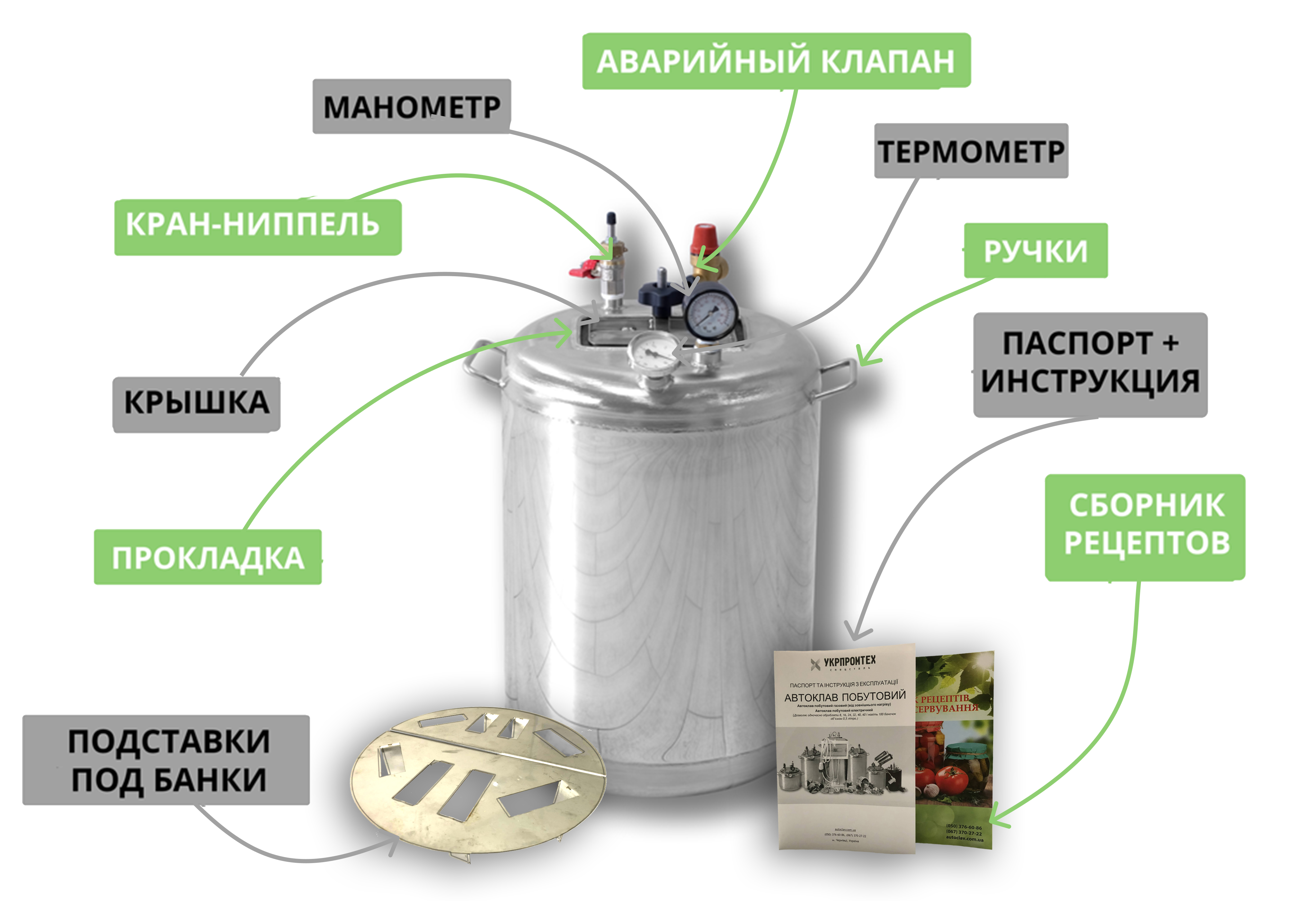 - Автоклав имеет удобную ручку крепления и продуманную структуру.