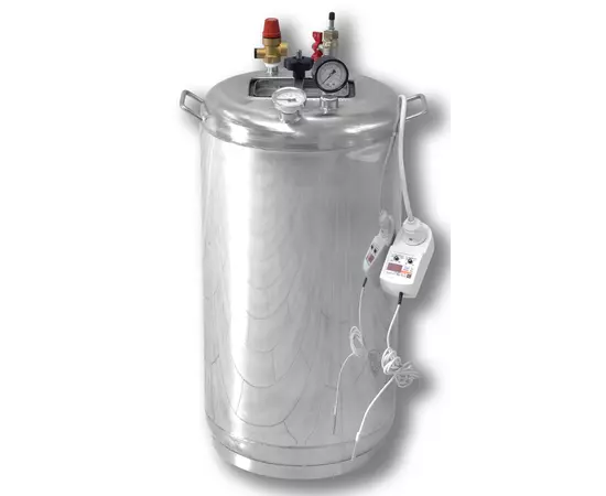 Автоклав электрический УКРПРОМТЕХ "Гуд-32 electro (Универсальный)" - качественный бытовой автоклав вместительностью на 32 банки объемом 0.5 литра, так же можно загружать банки объемом 1 и 2 литра, что дает возможность варьировать объемы загружаемой продукции. С помощью автоклава можно приготовить много различных заготовок в домашних условиях, а именно: рыбные консервы и мясные тушенки, паштеты, овощи и грибы, а так же компоты и варенья. Автоклав универсален в плане источника нагрева и работает как от электросети, так и от внешнего источника. Автоклав укомплектован блоком управления, что дает возможность готовить в автоматическом режиме, предварительно задавая параметры температуры и времени. Отличительной чертой аппарата является конструкция крышки, которая поджимается изнутри давлением.