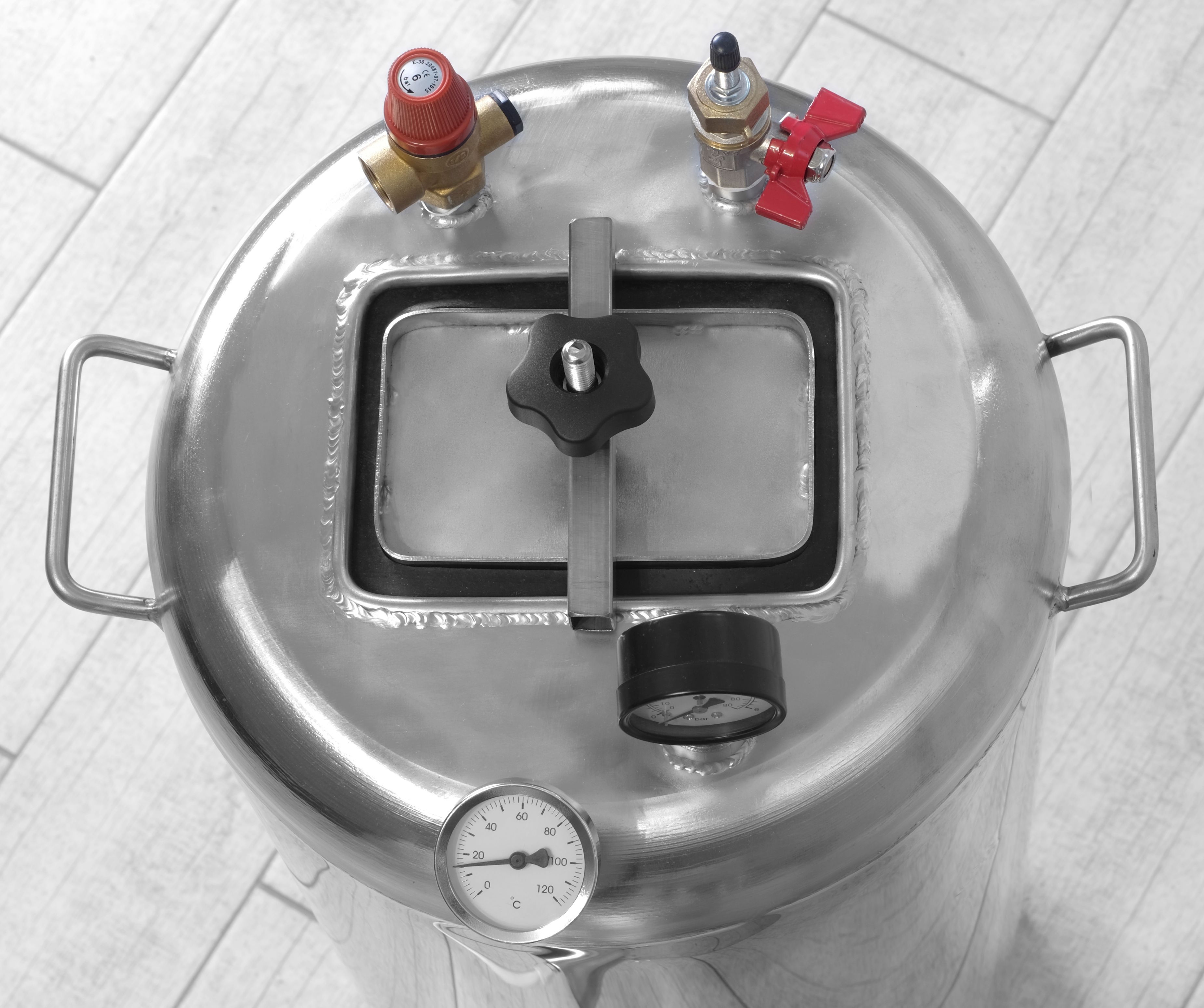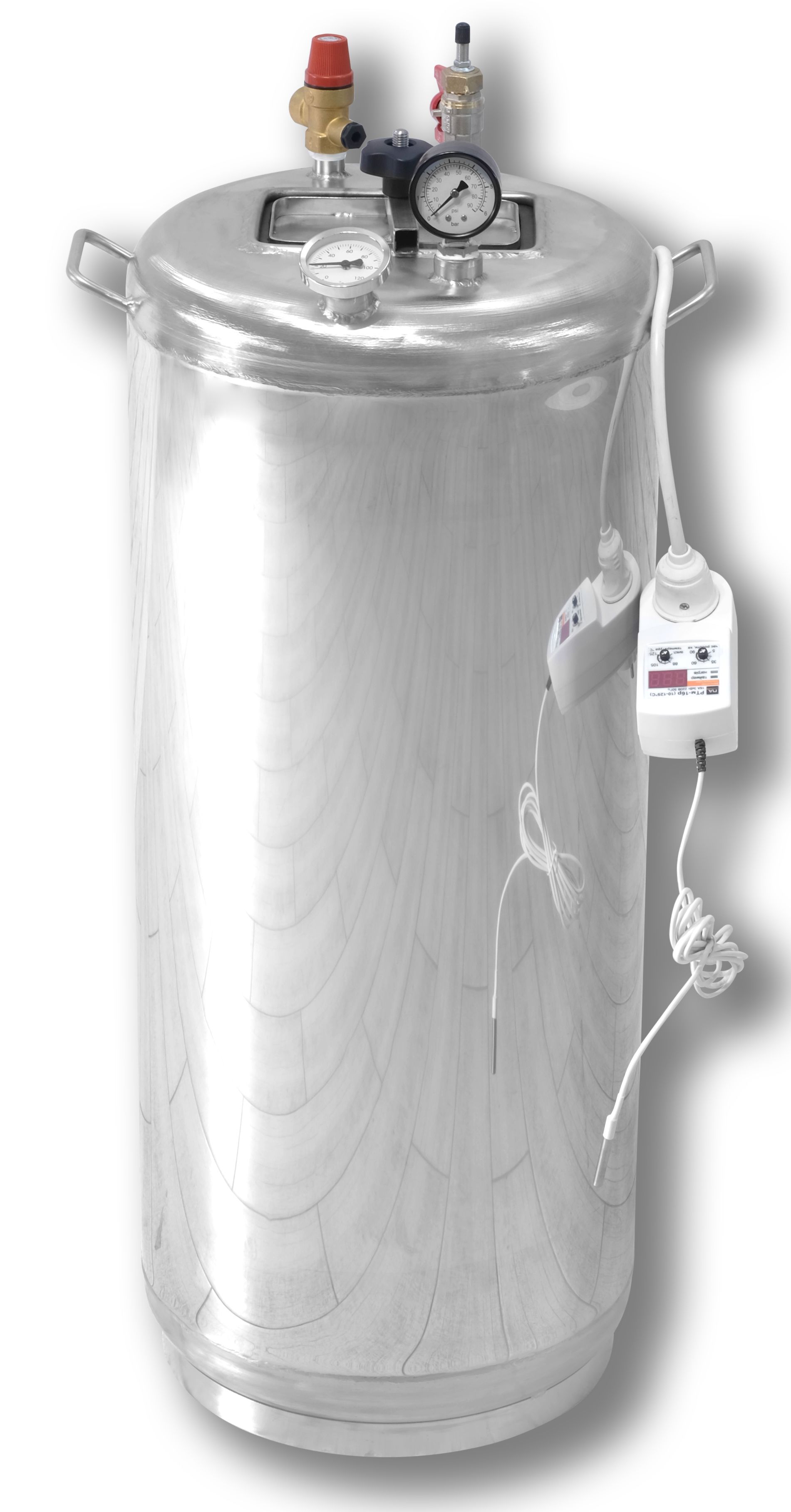 Аппарат универсален в плане источника нагрева, он может греться как от внешнего источника тепла, так и от электросети. Агрегат укомплектован блоком управления, использование которого дает возможность готовить в автоматическом режиме, задавая необходимые параметры времени и температуры. Данная серия автоклавов имеет особенную конструкцию крышки, которая поджимается изнутри. Так же аппарат имеет удобную ручку крепления и продуманную конструкцию.
