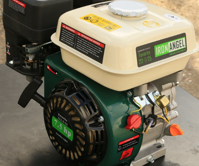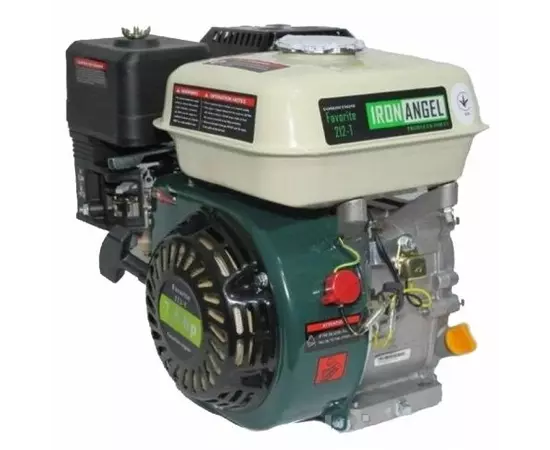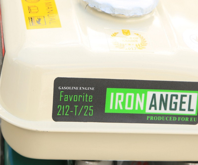 Двигун бензиновий Iron Angel Favorite 212-Т/25 - це 4-тактний одноциліндровий двигун з повітряним охолодженням, потужність якого складає 7.5 к.с. Модель оснащена безліччю приємних доповнень: блоком контролю обертів, датчиком рівня масла, чавунною гільзою циліндра, Т-маркуванням валу та іншими. Об'єм паливного бака моделі становить 3,6 л, об'єм циліндра – 212 кубічних сантиметрів.